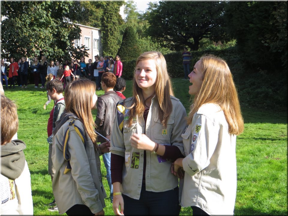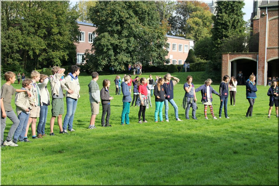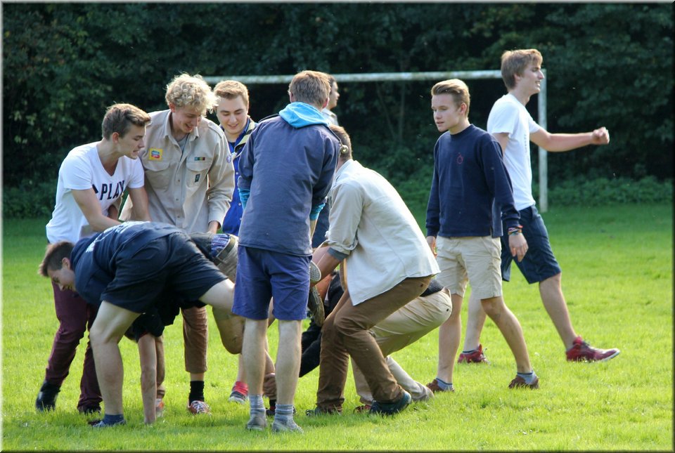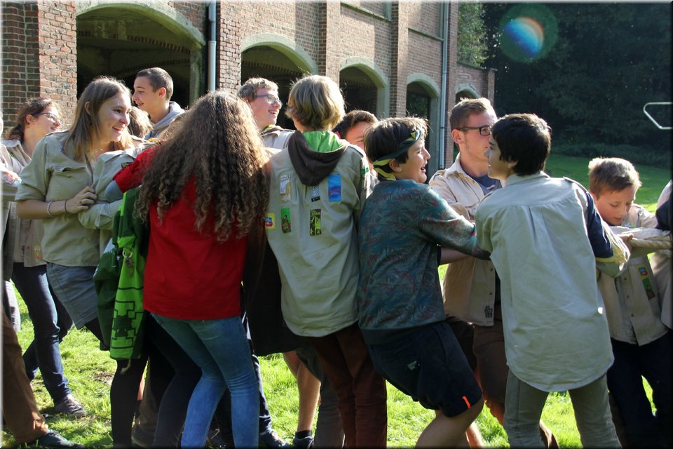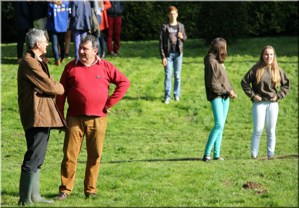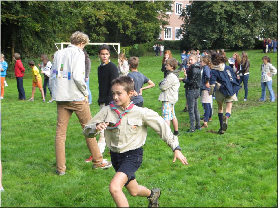 Bij het touwtrekken trokken de scouts, met het lichte voordeel in aantal leden, telkens aan het langste eind. Daarna volgde er een leuk en wild halfuurtje kringspelen en het spel Dikke Berta aan het einde. Heel wat leraars kwamen ook afgezakt naar het terrein, maar de aanblik van zoveel modder deed de meesten, om begrijpelijke redenen, wat afstand houden.