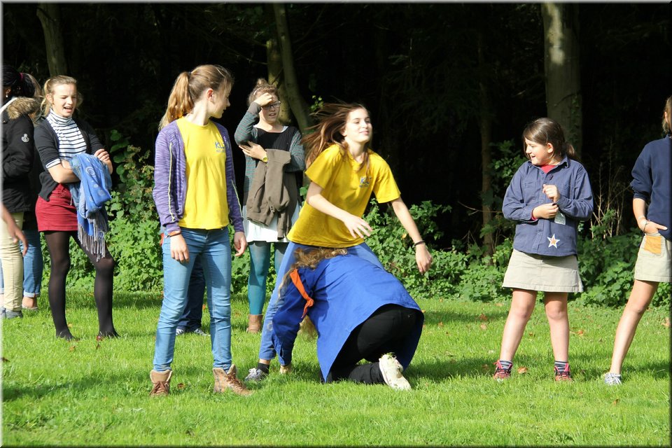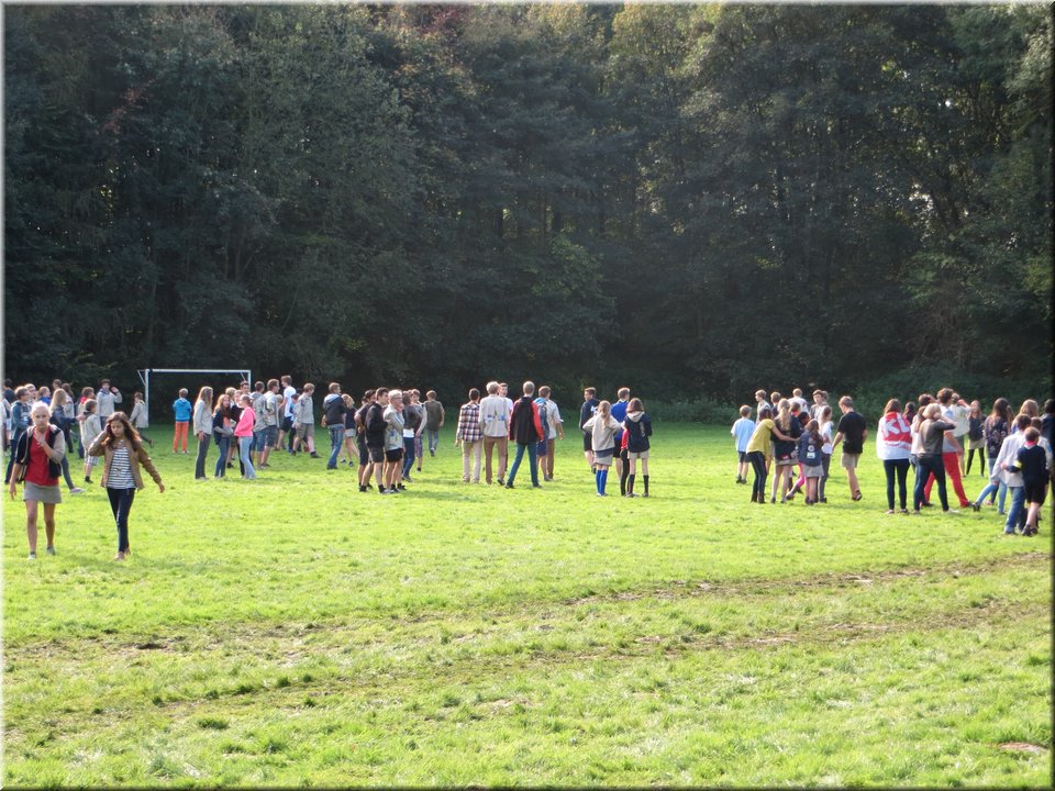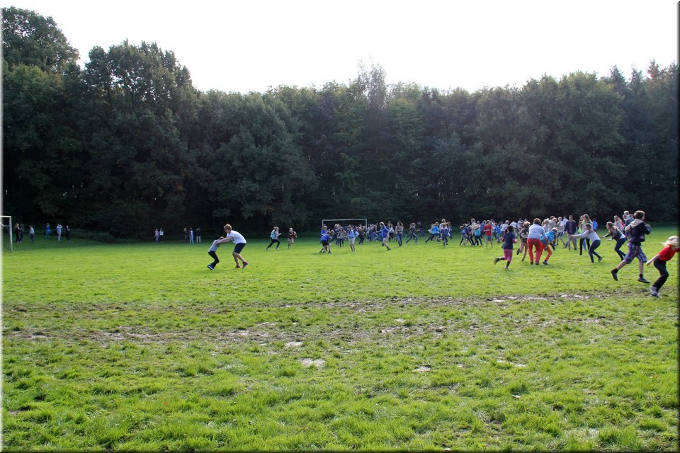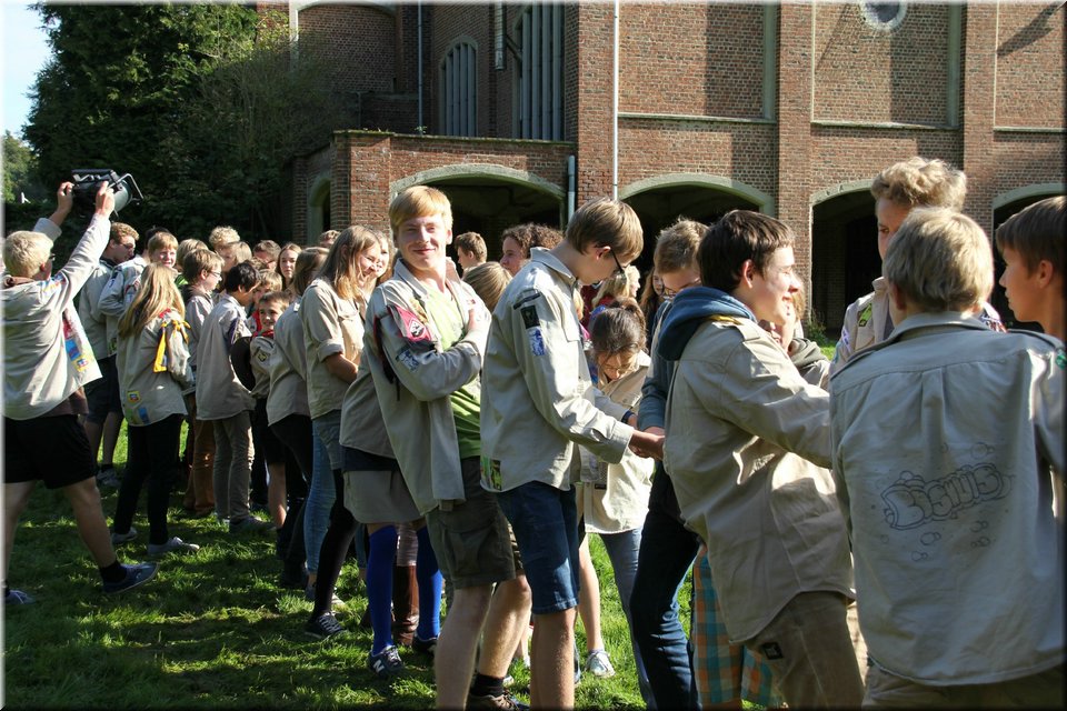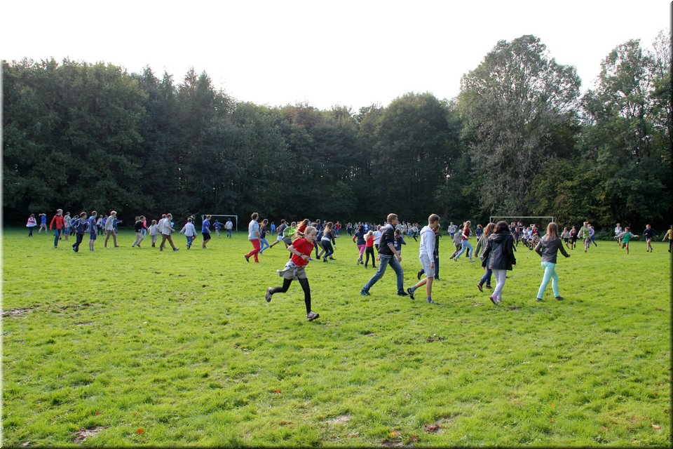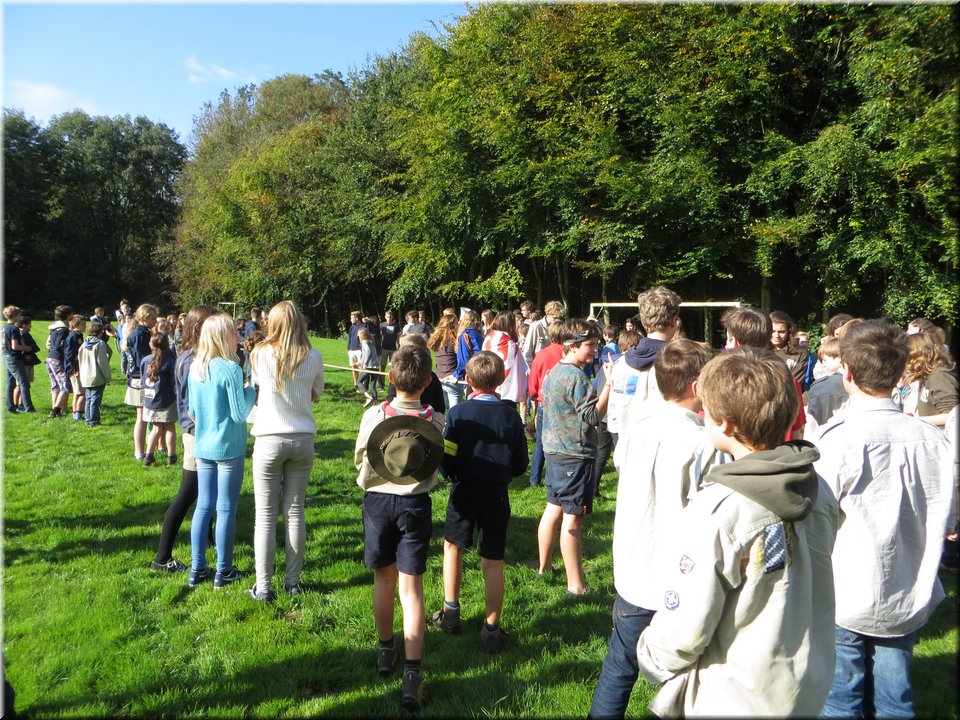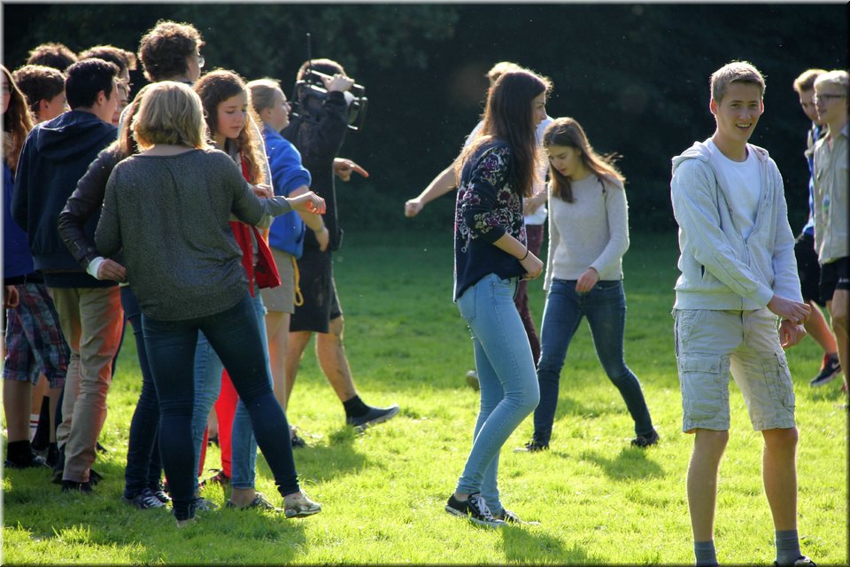 Bij het touwtrekken trokken de scouts, met het lichte voordeel in aantal leden, telkens aan het langste eind. Daarna volgde er een leuk en wild halfuurtje kringspelen en het spel Dikke Berta aan het einde. Heel wat leraars kwamen ook afgezakt naar het terrein, maar de aanblik van zoveel modder deed de meesten, om begrijpelijke redenen, wat afstand houden.