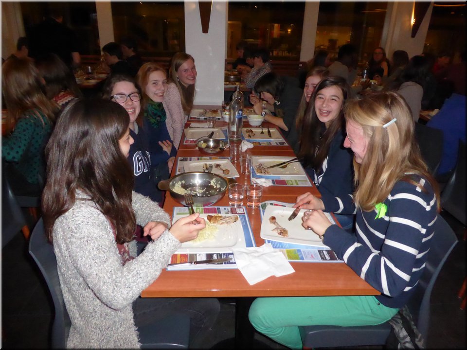 We waren allemaal opgewonden om te vertrekken. Toen we aankwamen in ons hotel te Nieuwpoort stond ons een heerlijke maaltijd te wachten. Om de dag af te sluiten, zijn we gaan ‘discobowlen’. De mooie muziek en de fantastische sfeer maakten de avond meer dan geslaagd.