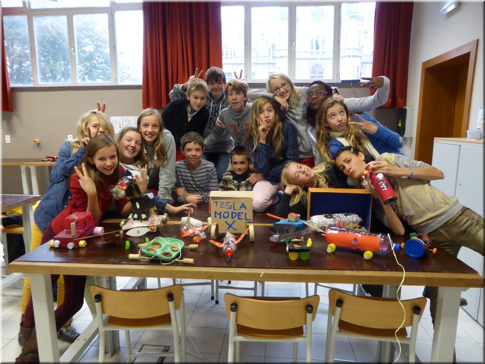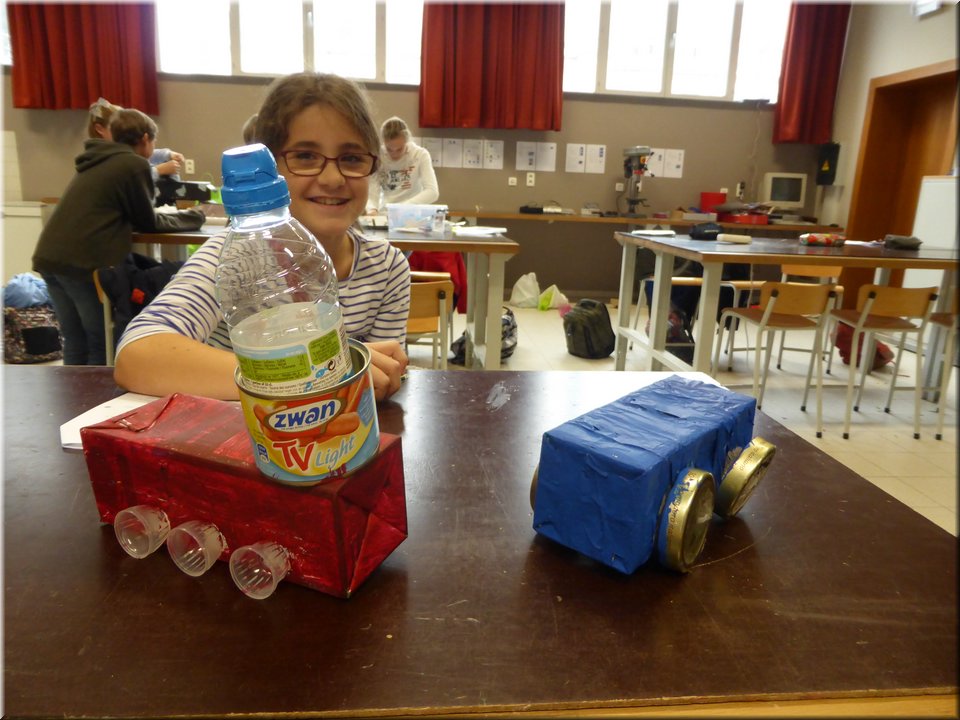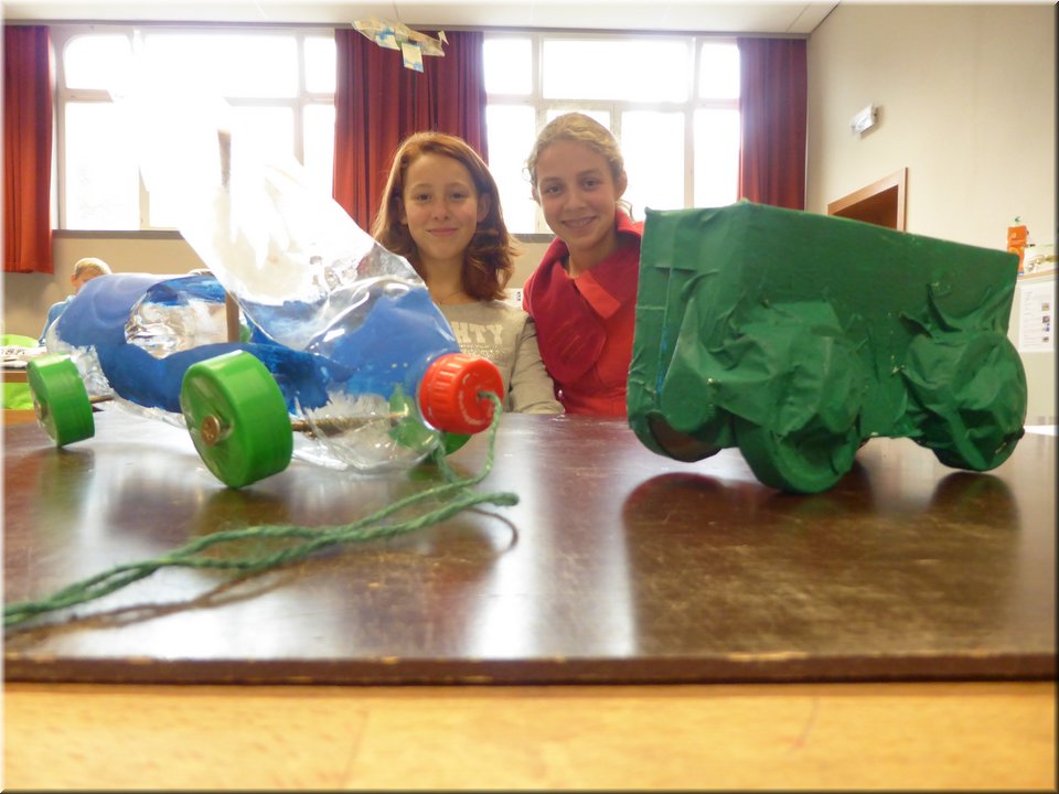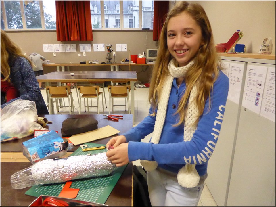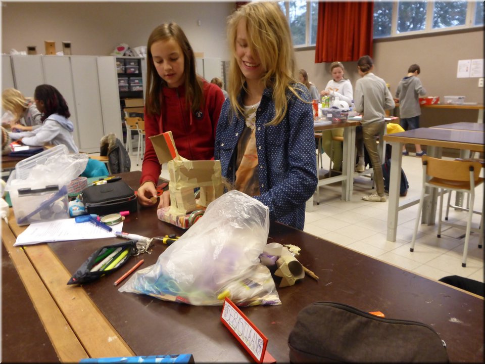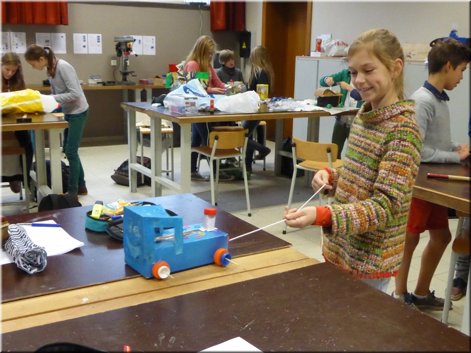 Zo leerden onze leerlingen - die groot komen met computer games en high tech speelgoed - dat je van letterlijk alles, zelfs afval, geweldig speelgoed kan maken, gratis en voor niks. De technische vaardigheid en creativiteit van onze leerlingen werd hiermee extra uitgedaagd, mèt een zijdelingse blik op de situatie in ontwikkelingslanden als Congo. Of hoe een les Techniek je iets kan bijbrengen over de andere kant van de wereld en nog extra leuk en uitdagend kan zijn ook.