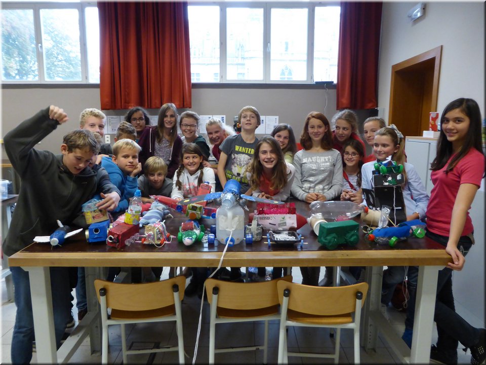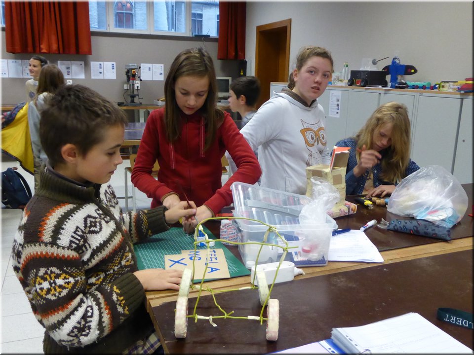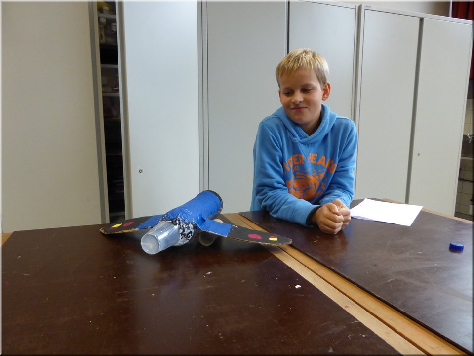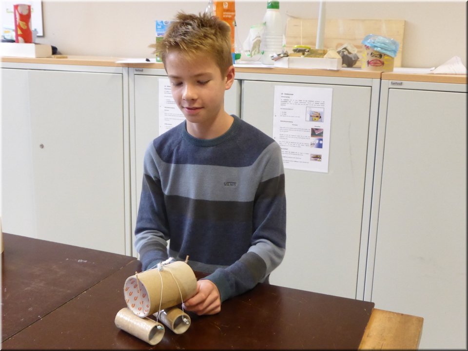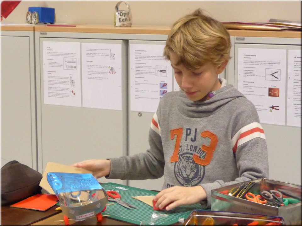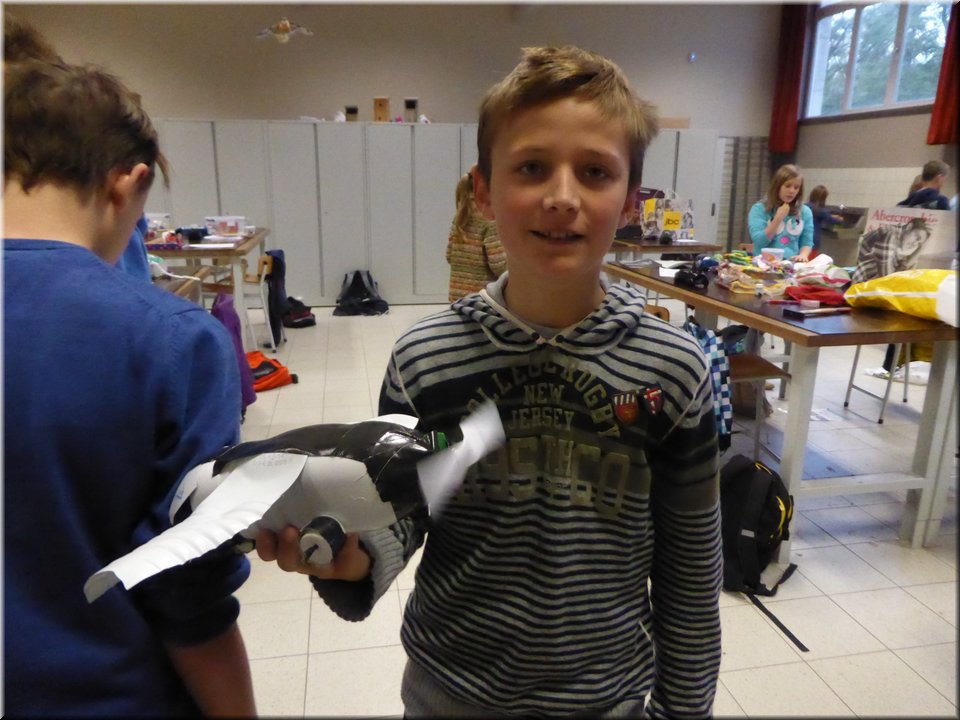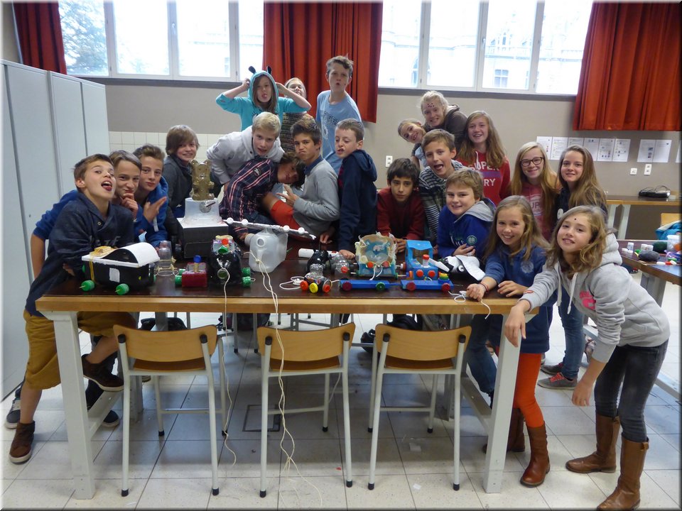 Zo leerden onze leerlingen - die groot komen met computer games en high tech speelgoed - dat je van letterlijk alles, zelfs afval, geweldig speelgoed kan maken, gratis en voor niks. De technische vaardigheid en creativiteit van onze leerlingen werd hiermee extra uitgedaagd, mèt een zijdelingse blik op de situatie in ontwikkelingslanden als Congo. Of hoe een les Techniek je iets kan bijbrengen over de andere kant van de wereld en nog extra leuk en uitdagend kan zijn ook.