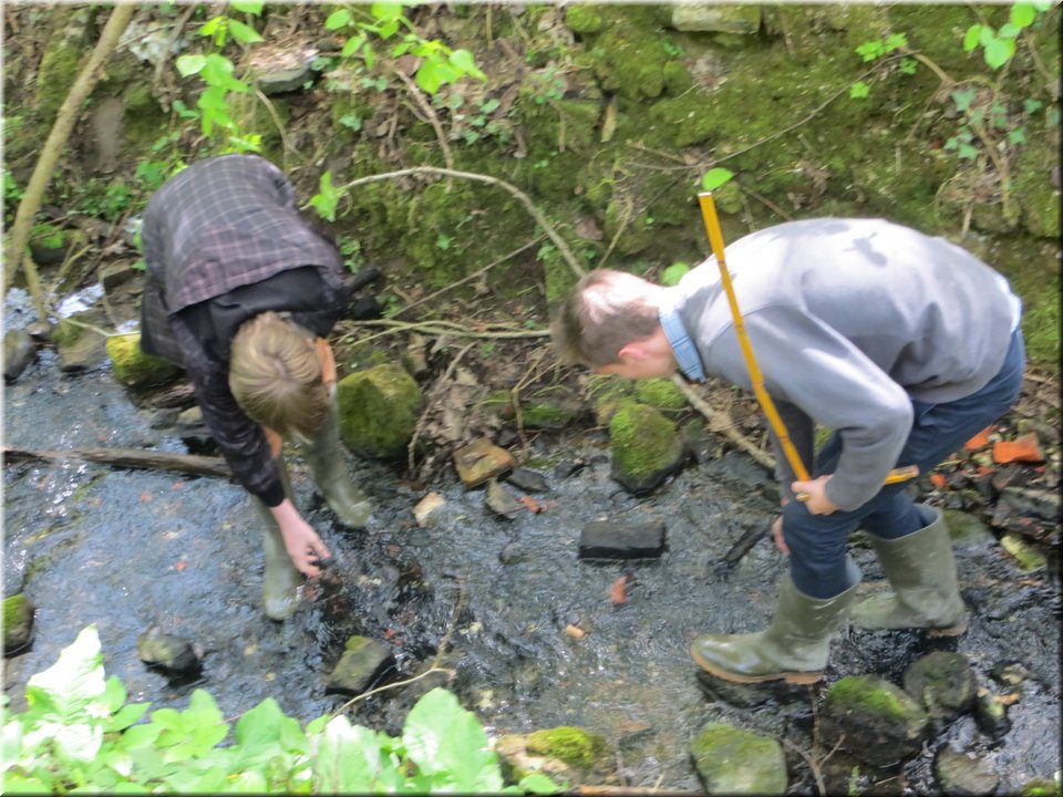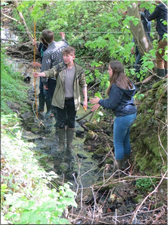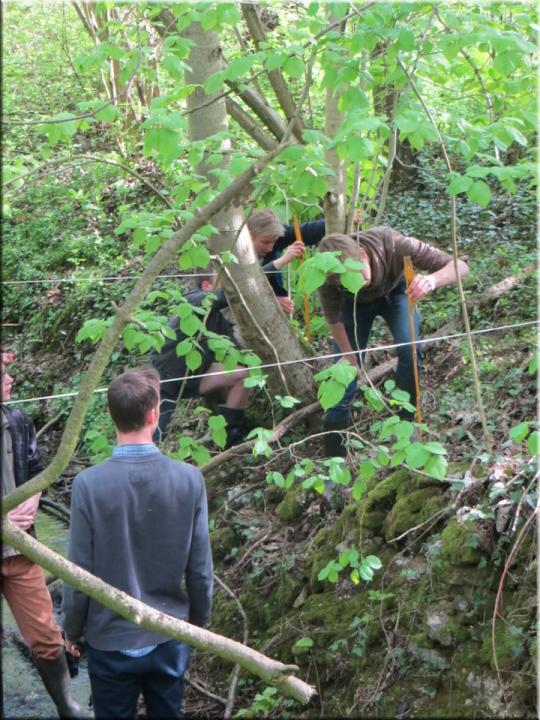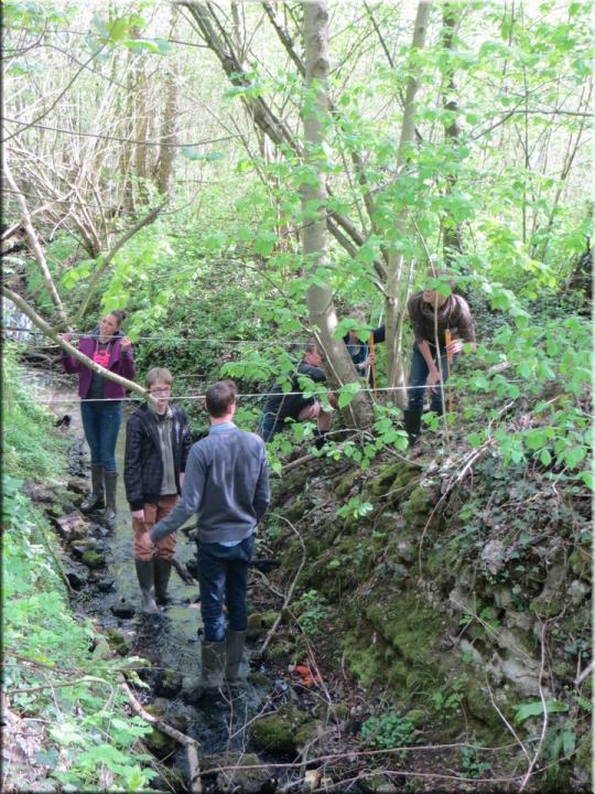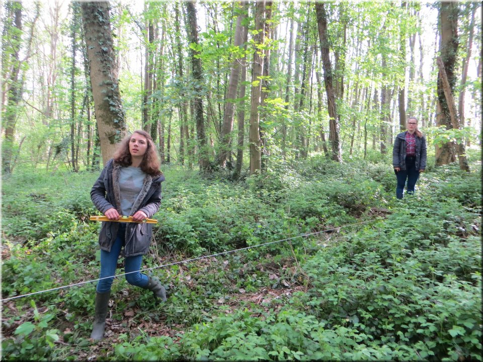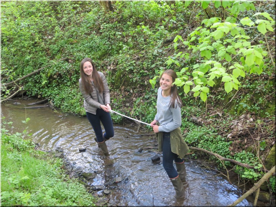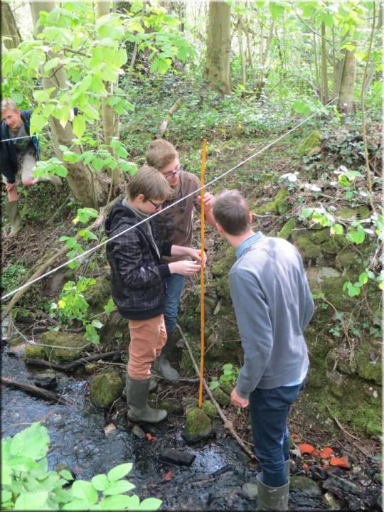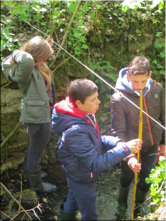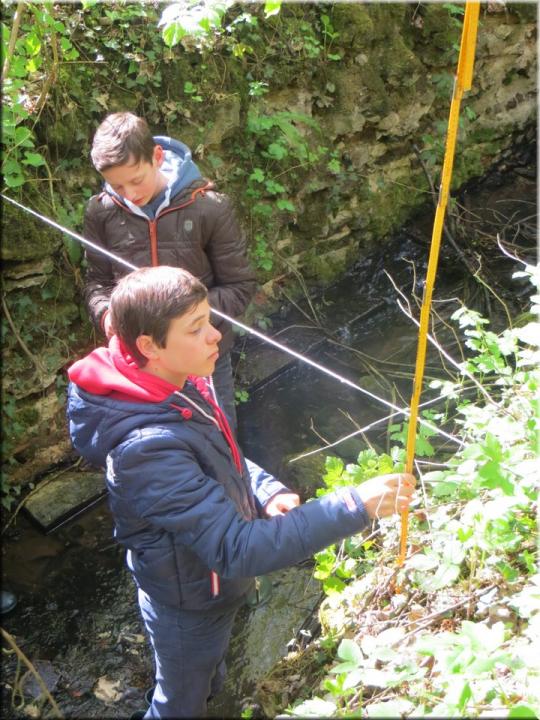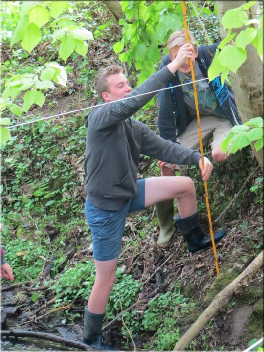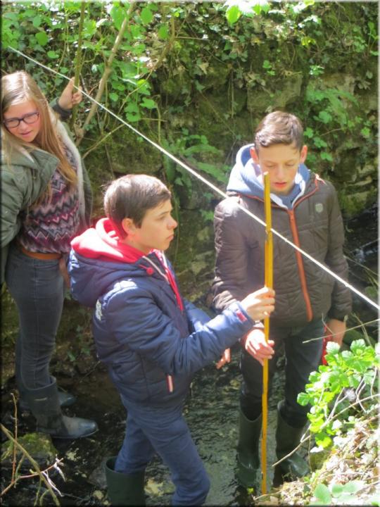 Ze moesten zelf de handen uit de mouwen steken om een aantal opmetingen te verrichten. Aan de hand van een touw en loodrechte stok bepaalden ze bijvoorbeeld het hellingspercentage van een helling. Met behulp van kurk, een chronometer en een rolmeter werd dan weer de stroomsnelheid van water gemeten. Hoe onze leerlingen het ervan af brachten, kan je zien op de foto’s…