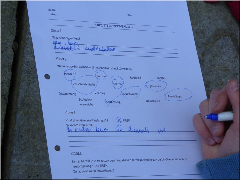 Wat stond er die dag op het programma? Wel, de leerlingen speelden een uitdagend spel rond biodiversiteit in Meldertbos. Ze maakten gebruik van GPS-toestellen om op bepaalde plaatsen in het bos terecht te komen. Met behulp van de leerstof uit de voorgaande biologielessen moesten ze hier telkens vragen oplossen.