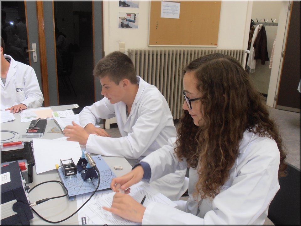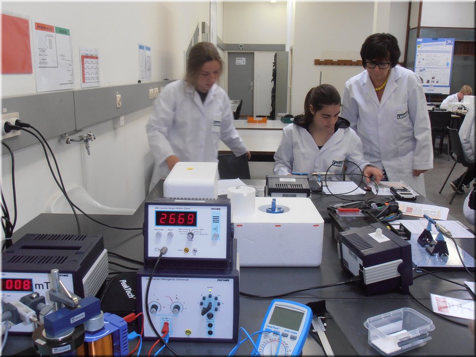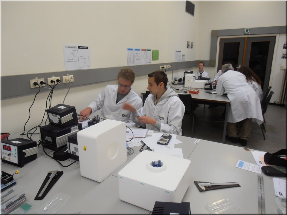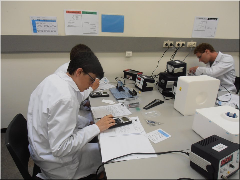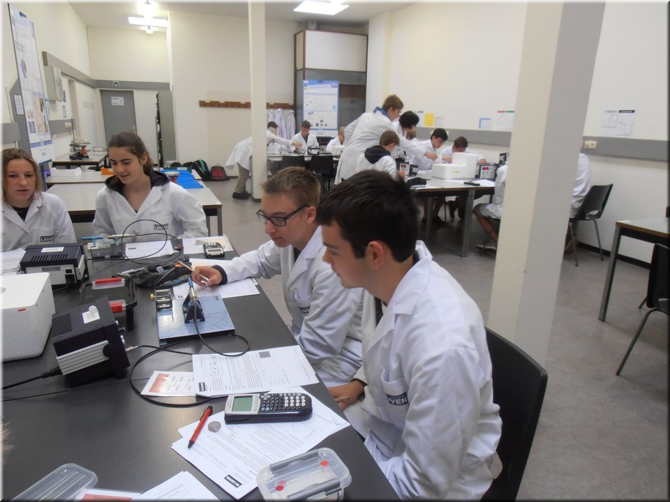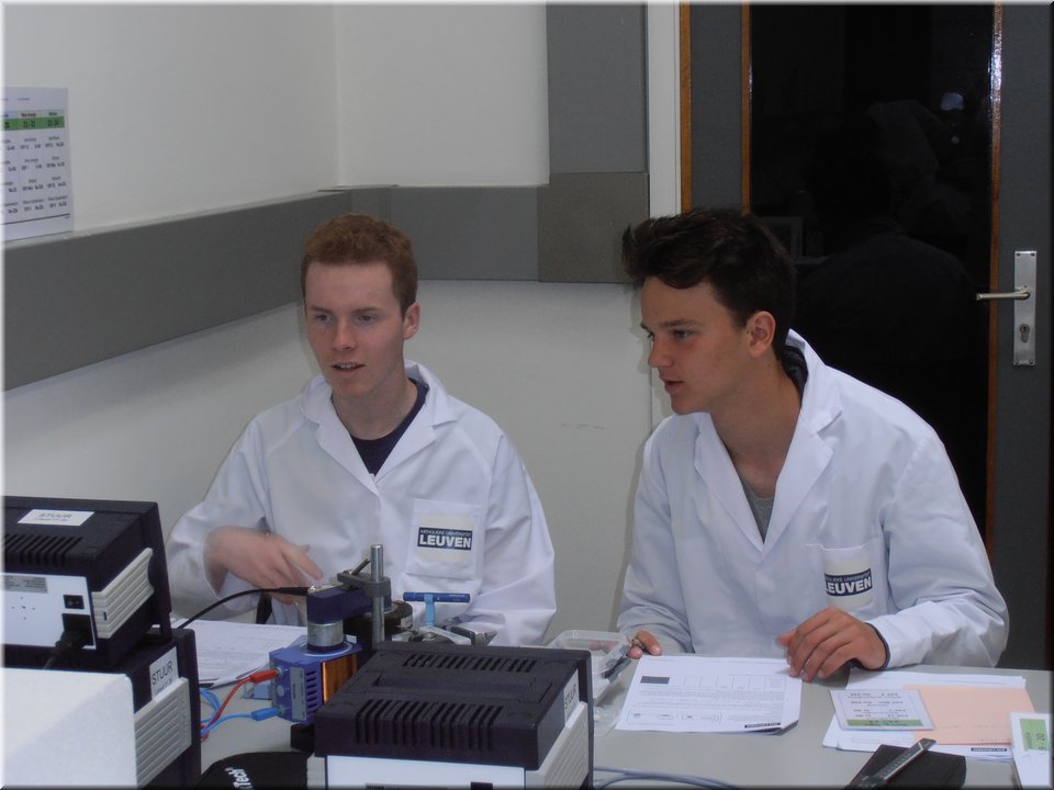 Eind mei trokken de leerlingen van het 5e jaar naar Heverlee. Hier mochten ze de leerstof kernfysica afronden door het zelfstandig uitvoeren van een reeks practica. Het waren uiteenlopende experimenten waarin ze radioactieve bronnen leerden detecteren, waarin ze het verband tussen stralingsintensiteit en afstand nagingen en waarin ze radioactieve straling zichtbaar maakten. Kortom, de theorie kon op een veilige, begeleide wijze in de praktijk worden omgezet!