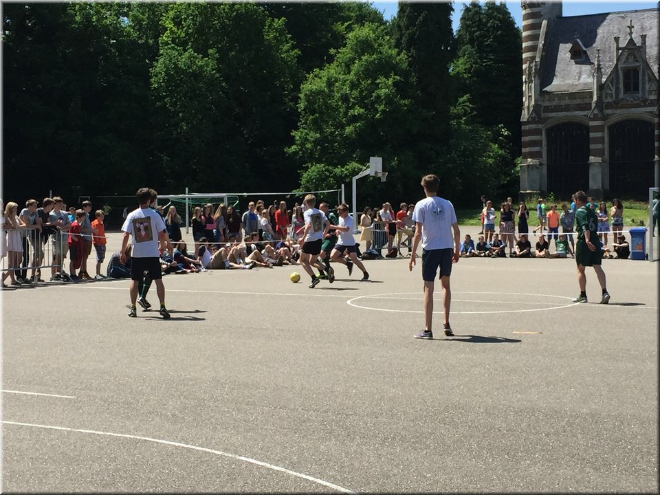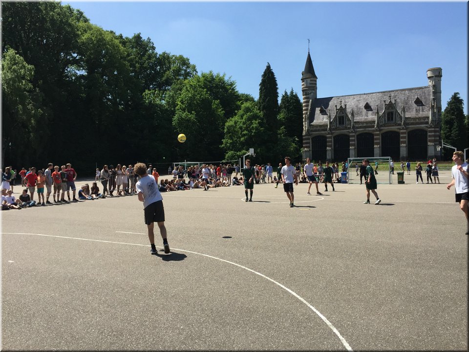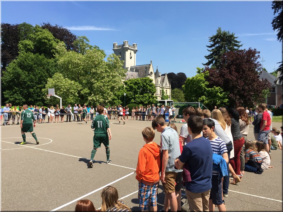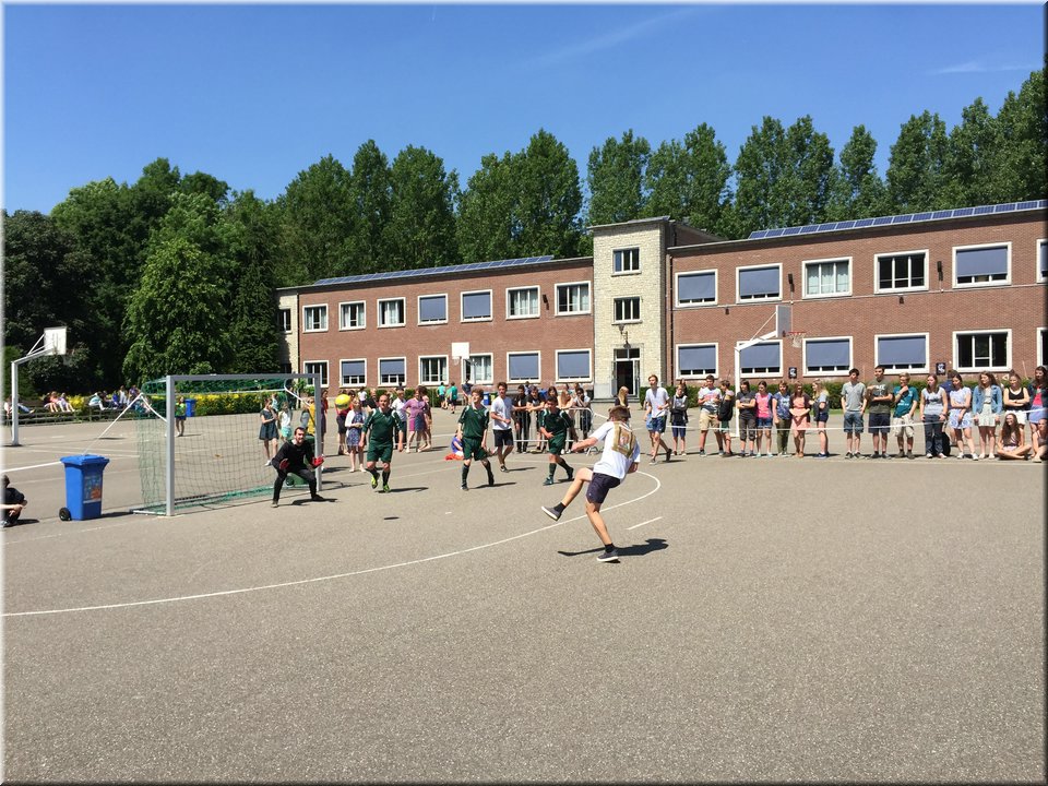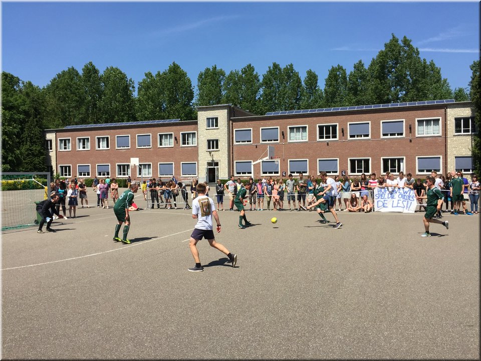De winnaar van deze competitie ging door naar de finale tegen de lerarenploeg. Na een spannende match op een zonovergoten veld en temidden van veel belangstelling van medeleerlingen en leraars stond de stand bij het affluiten 3 tegen 3. Twee ploegen die elkaar overduidelijk waard waren en mekaar met snelle reacties en mooie combinaties het vuur aan de schenen legden.