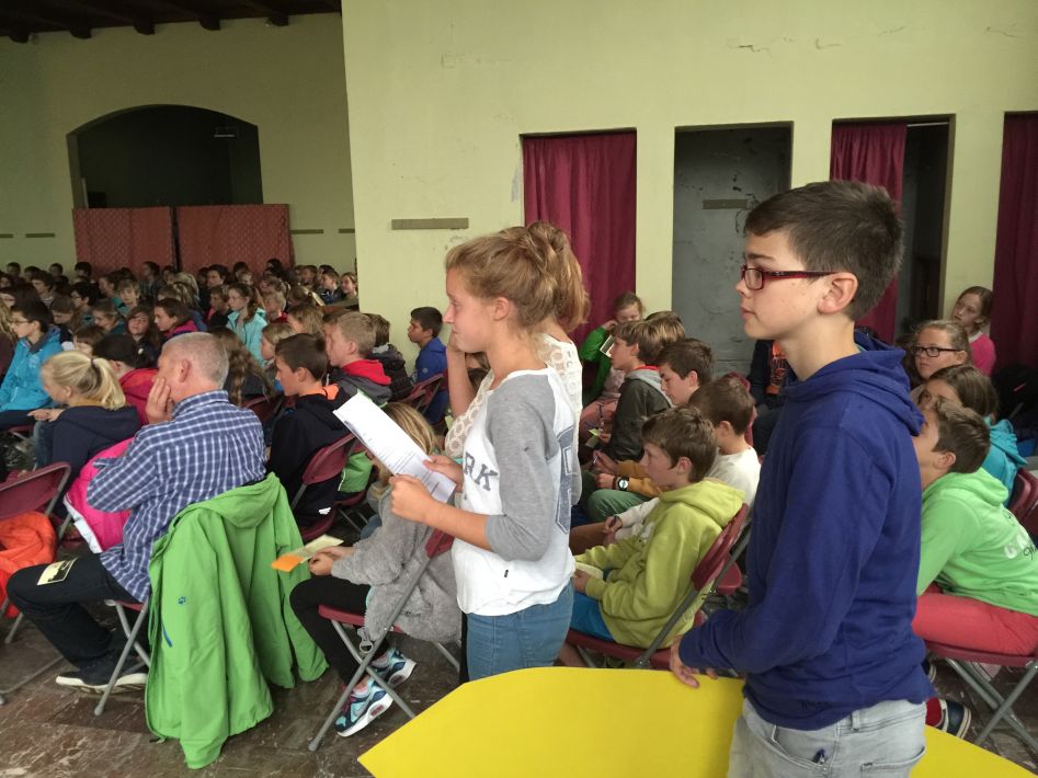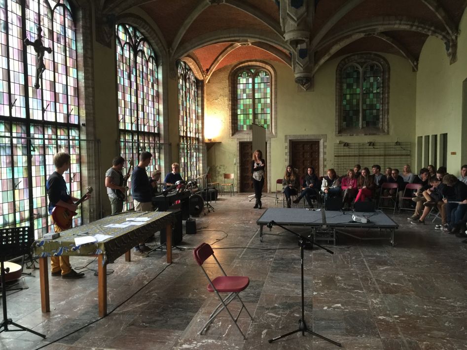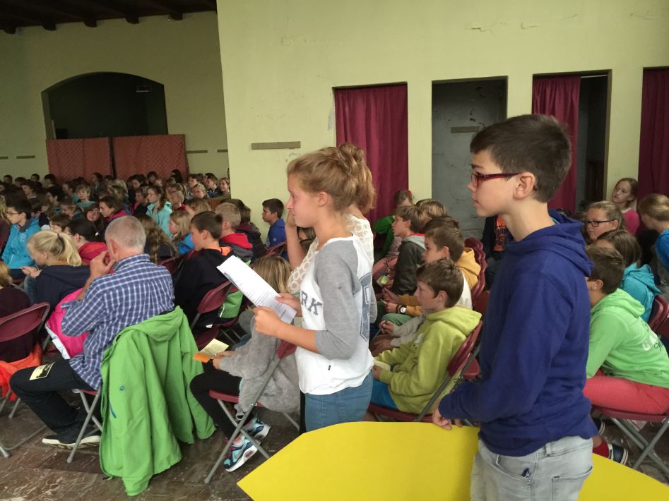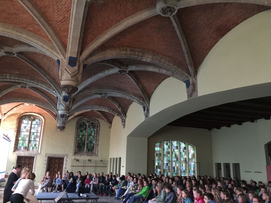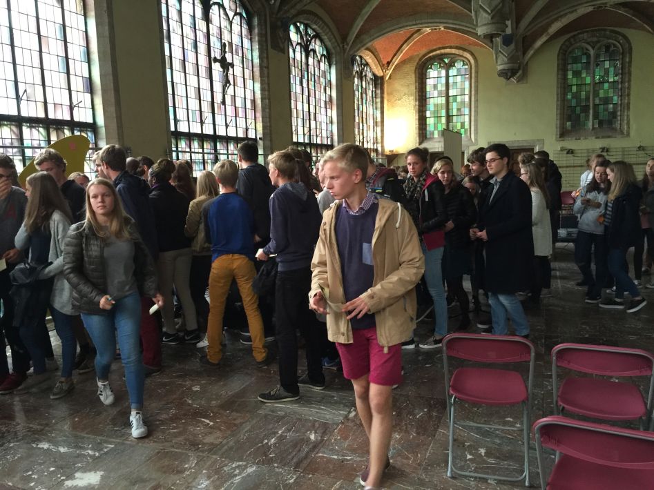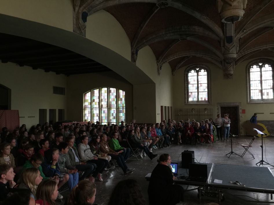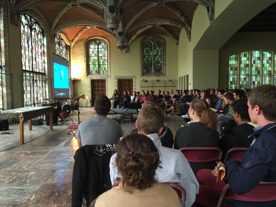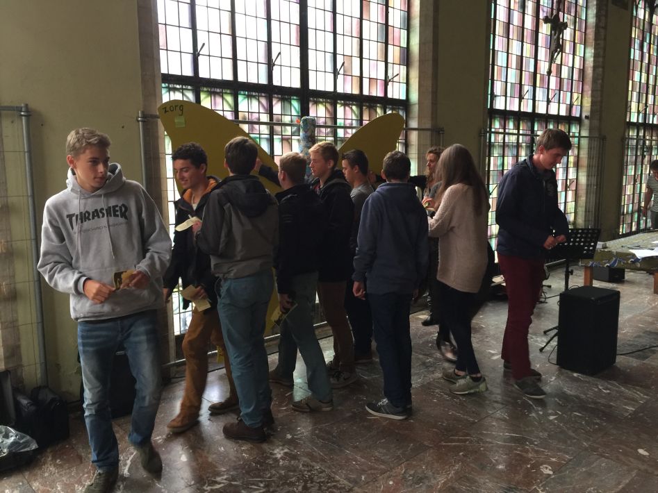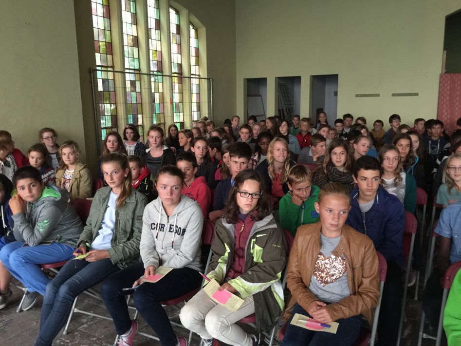 Op donderdag 17 september hielden we met alle graden een startviering in de orangerie. De godsdienstleraars en vele leerlingen hadden tijd en energie in de voorbereiding gestoken. Het boeiende resultaat was dan ook merkbaar. Met een wervelend uur vol multimedia en interactie en met woord en muziek door leraars en leerlingen werd je zo meegezogen. Tijd om te beleven en mee te maken, maar ook tijd om na te denken over jezelf en school en de wereld rond je.