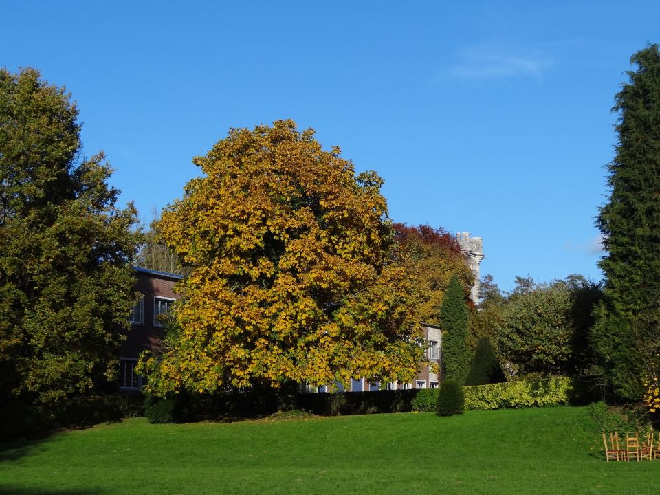 Nergens kan het najaar zo mooi zijn als in Meldert. Vooral dit jaar, nu de herfst op kousevoeten kwam en het zacht bleef, houden de bomen lang blad en hebben ze de wonderlijkste tinten. We maakten een wandeling over het kasteeldomein van het Sint-Janscollege en brachten de volgende beelden mee. In kleur!
