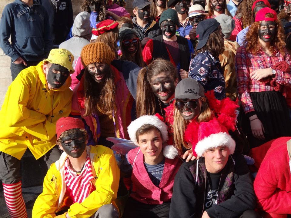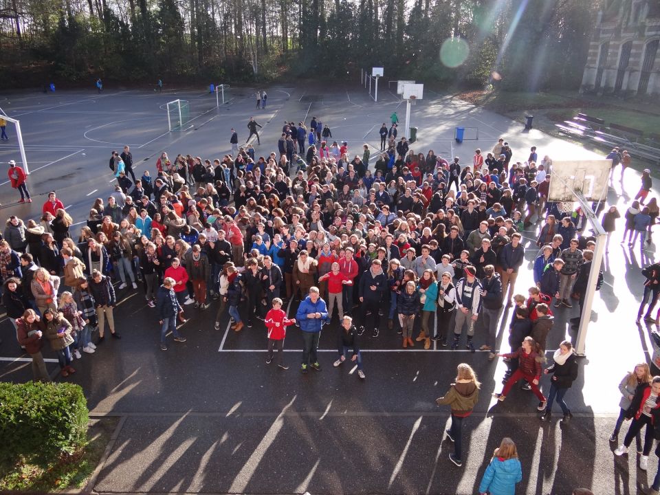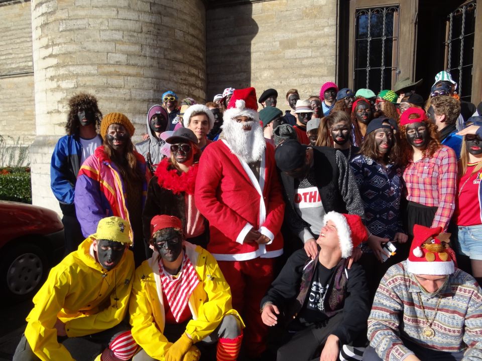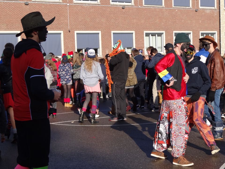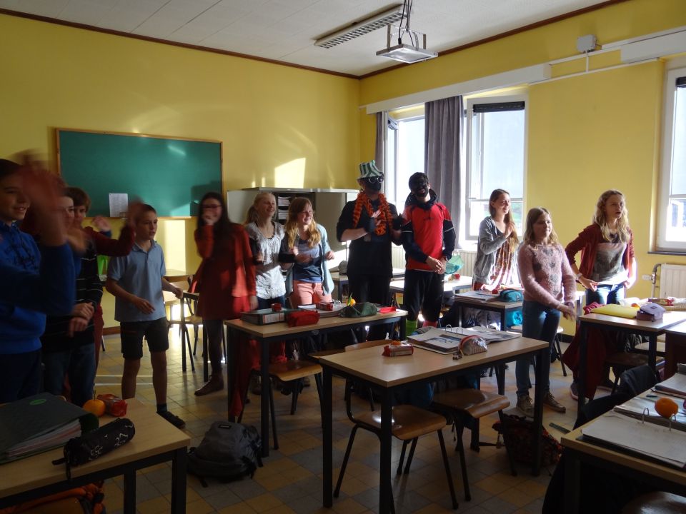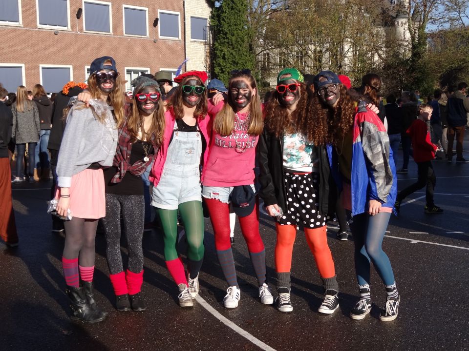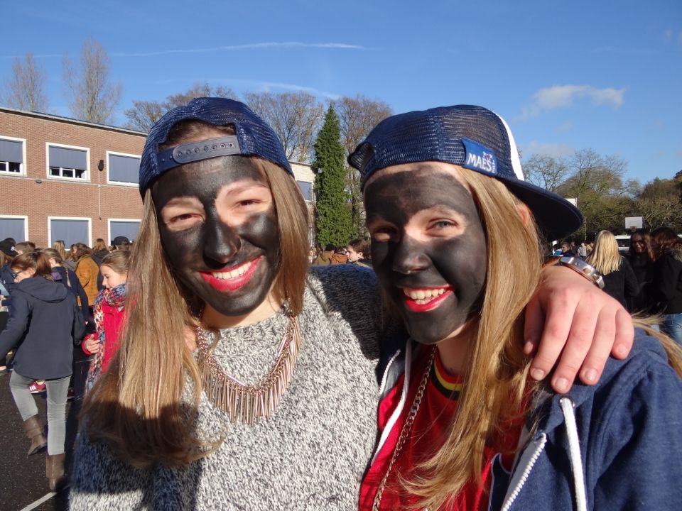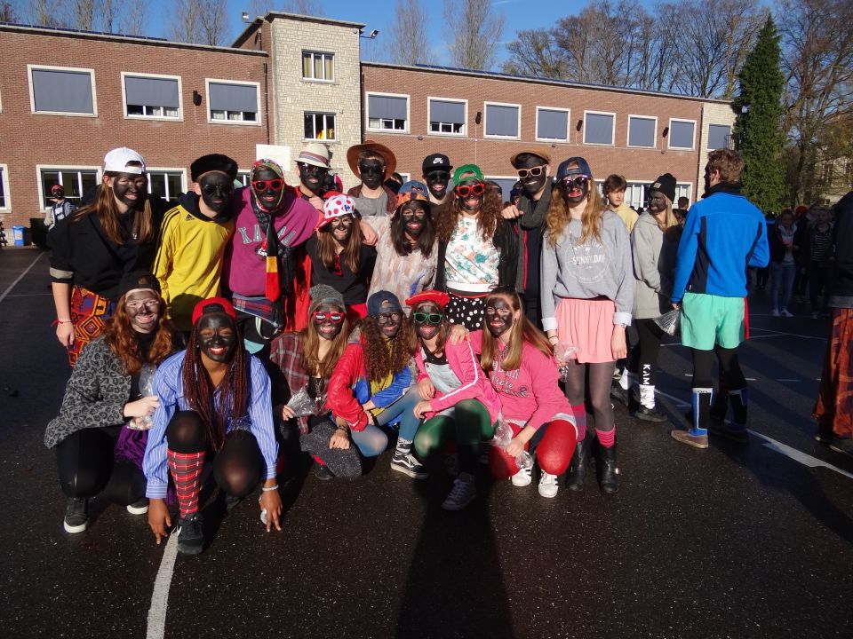 Afgelopen donderdag was het weer zover: de Sint deed zijn intrede in het Sint-Janscollege. Deze Sinterklaaseditie ging zeker niet onopgemerkt voorbij. Een grote groep Zwarte Pieten loodste de leerlingen uit de refter naar de speelplaats om met hen de Sint te verwelkomen, maar die was op het eerste gezicht nergens te bespeuren. Op weg naar de speelplaats werden de leerlingen dan opeens verrast door een zwarte Sint (!), die, in een racewagen, zijn publiek toegesneld kwam. Nadat de Sint zijn intrede gedaan had, verwelkomde hij zijn leerlingen en sprak hen met een originele speech toe. (zie onderstaande tekst) De Pieten bezorgden intussen de zingende jongeren extra snoep en koekjes.