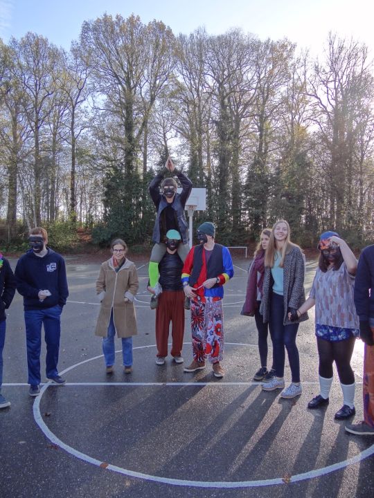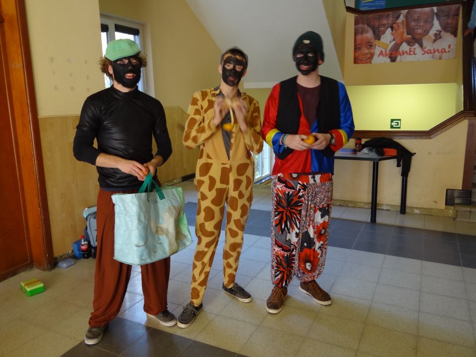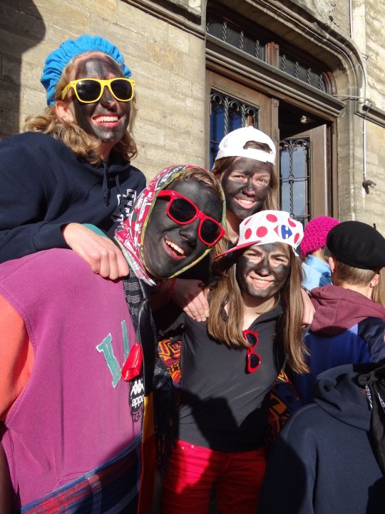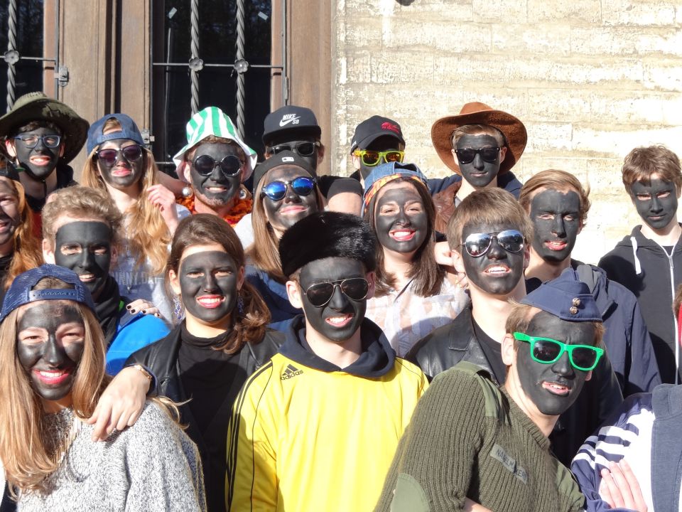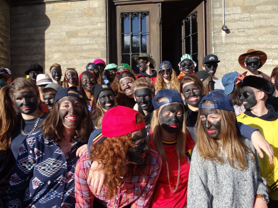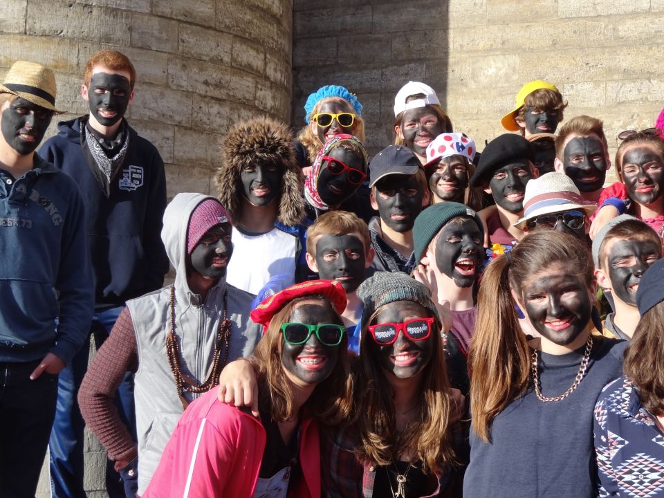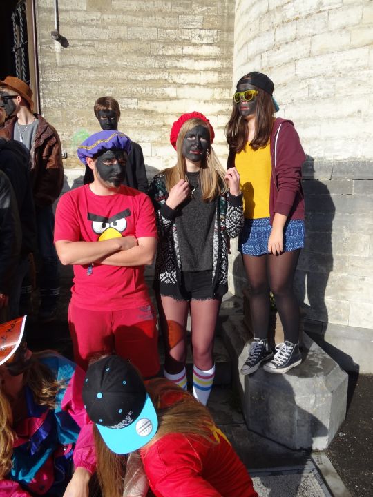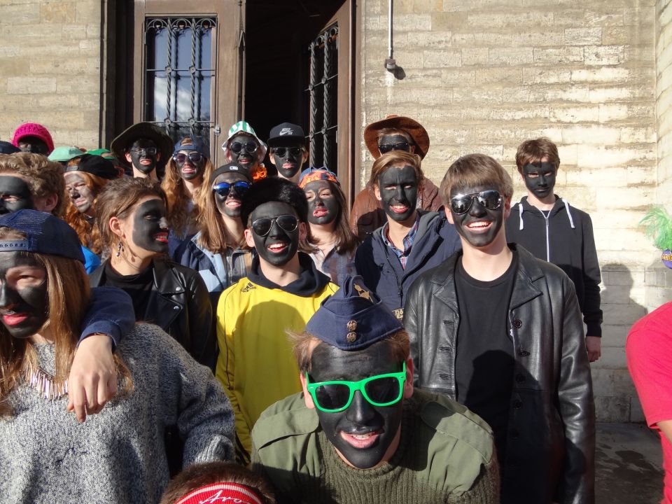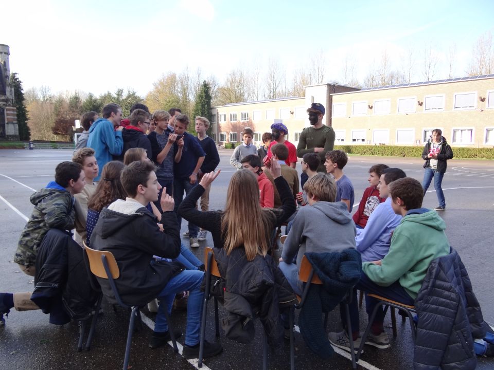 Afgelopen donderdag was het weer zover: de Sint deed zijn intrede in het Sint-Janscollege. Deze Sinterklaaseditie ging zeker niet onopgemerkt voorbij. Een grote groep Zwarte Pieten loodste de leerlingen uit de refter naar de speelplaats om met hen de Sint te verwelkomen, maar die was op het eerste gezicht nergens te bespeuren. Op weg naar de speelplaats werden de leerlingen dan opeens verrast door een zwarte Sint (!), die, in een racewagen, zijn publiek toegesneld kwam. Nadat de Sint zijn intrede gedaan had, verwelkomde hij zijn leerlingen en sprak hen met een originele speech toe. (zie onderstaande tekst) De Pieten bezorgden intussen de zingende jongeren extra snoep en koekjes.