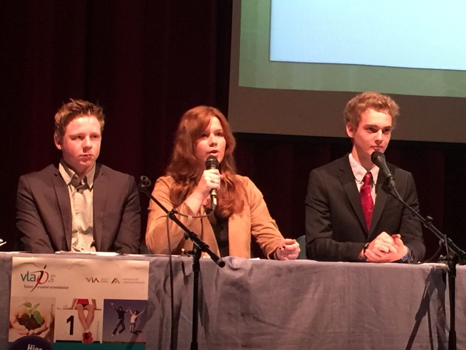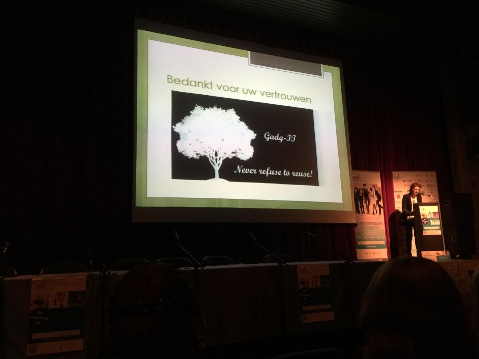 Onze school was er vertegenwoordigd met zijn twee mini-ondernemingen: Gadg-IT en VitaMove. Beide ondernemingen leverden professioneel ogende en klinkende presentaties af. Achteraf boden ze hun producten ook al te koop aan.