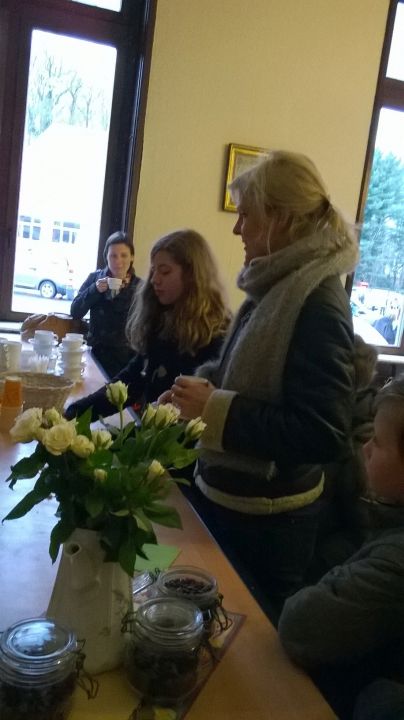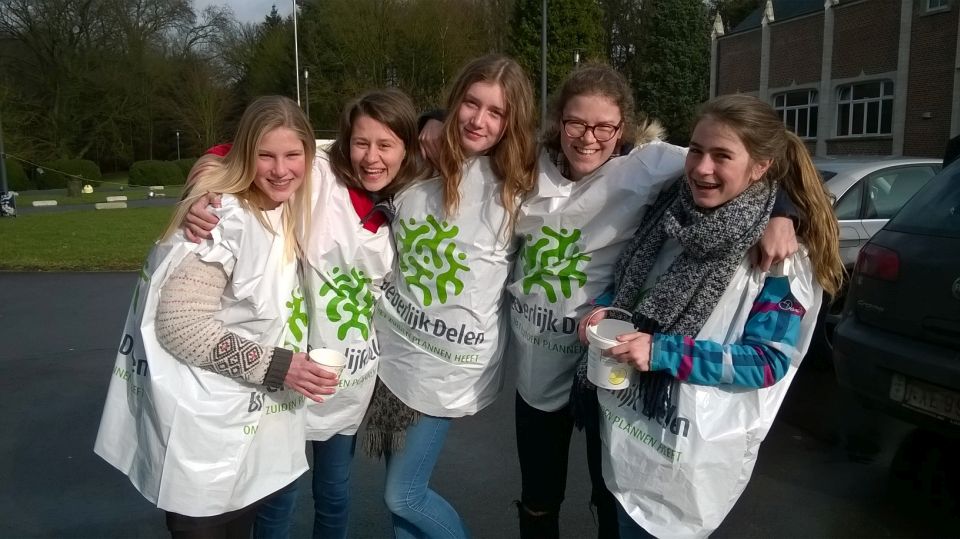 De leerlingen konden tijdens het middageten genieten van lekkere chocomelk en (h)eerlijk fruitsapjes en vanaf half vier konden wachtende chauffeurs zich warmen aan een kop Fairtradekoffie in ons eigenste Koffiestopcafé. Of ze konden zich ook laten bedienen door de leerlingen van 2LATC/2MWEC. Hun enthousiasme kon het ingezamelde bedrag laten oplopen tot 550,13 EUR! Een welgemeende 'dankuwel' aan iedereen!