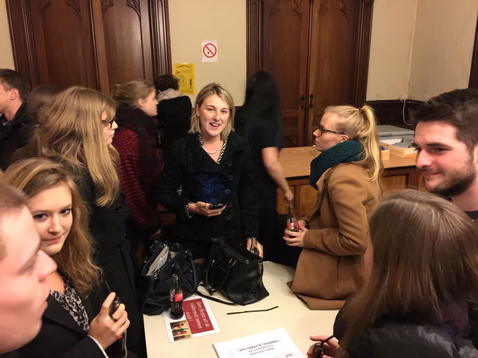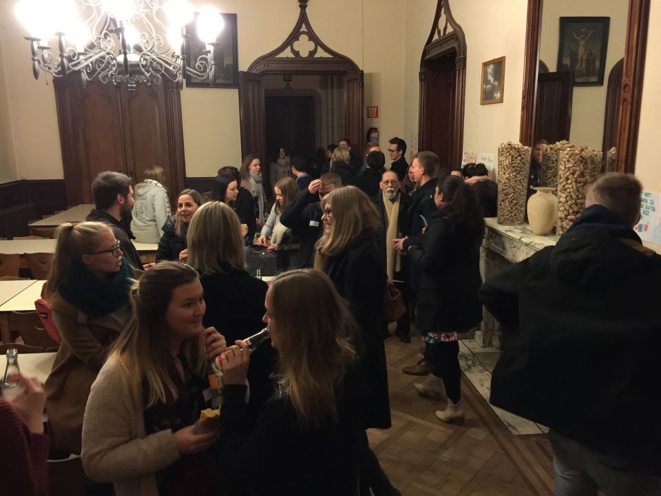 Er waren zo’n 80 oud-leerlingen op de afspraak en er waren maar liefst veertig studierichtingen vertegenwoordigd. Tegelijkertijd konden de ouders uitleg krijgen over de BaMa-structuur en het systeem van de studiepunten. Mevr. Elly Quanten, Directeur Onderwijscoördinatie, Uhasselt, bracht hierover een helder en geanimeerd verhaal. Elly Quanten is ook lid van de Inrichtende Macht van onze school en moeder van twee oud-leerlingen.