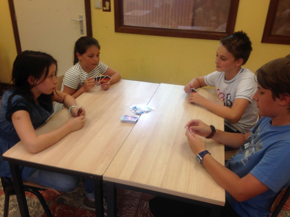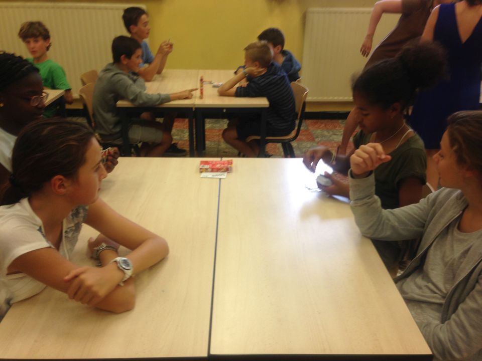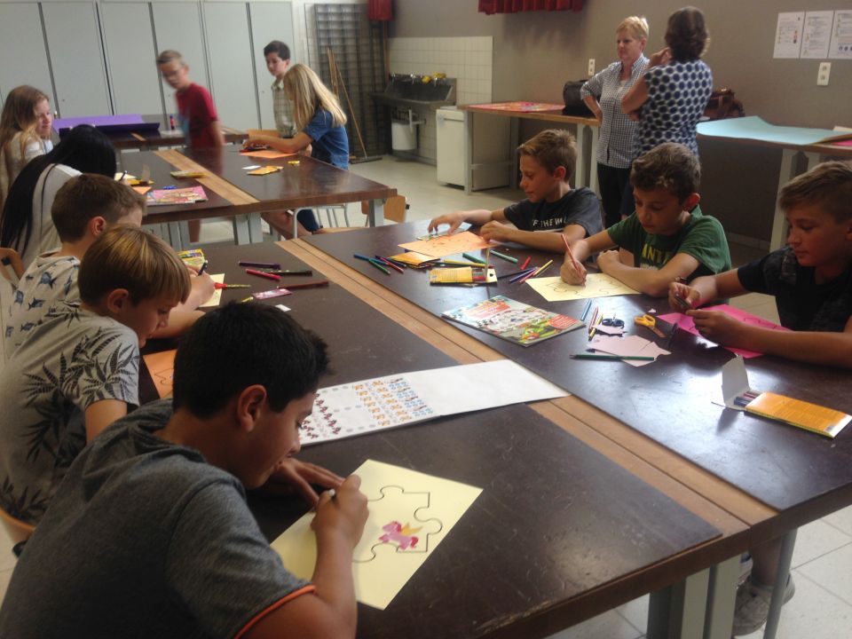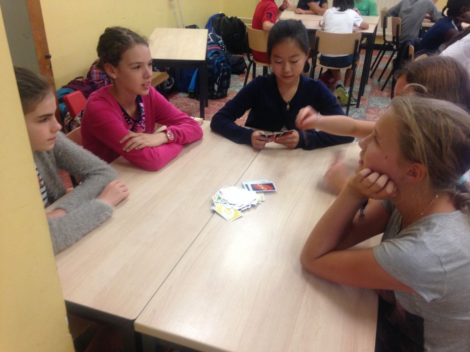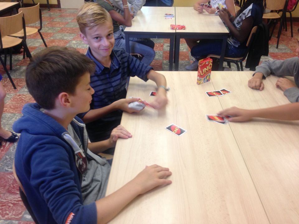 In de namiddag kregen de eerstejaars een heel onthaalprogramma achter de kiezen. In een aantal workshops konden onze nieuwkomers elkaar beter leren kennen (Wie is wie), werd er geknutseld om de klas te versieren (Klaspuzzel), kende ons leerplatform bijna geen geheimen meer (Smartschool), werd er in kleine groepen een kaartje gelegd (Uno) en werd een klas een team (Teambuilding). Dankzij het doorschuifsysteem leerden de leerlingen alle klassenleraars van het eerste jaar kennen.