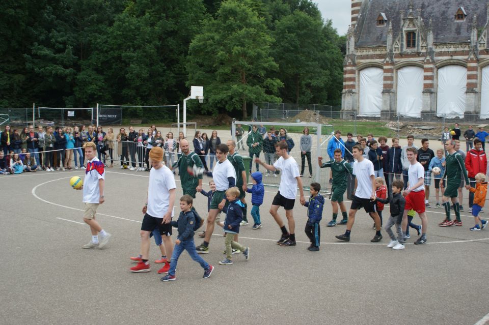 De leerlingen startten furieus maar stuitten op een ijzersterke Guy Puttevils in doel. Toch moesten de leerkrachten zich gewonnen geven. Na enkele pareltjes van de leerlingen leek een vernedering voor de leerkrachten compleet maar dat was buiten debutant Jo Franckx en de afscheidnemende Jurgen Quaeyhaegens gerekend. Samen met een doelpunt van Joris Wauters zetten zij een 5-3 eindstand op het bord. De leerkrachten hebben het onderspit moeten delven maar konden na een gezellige voetbalmiddag het terrein met opgeheven hoofd verlaten.