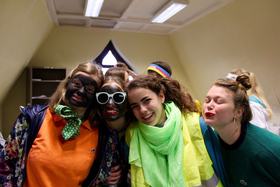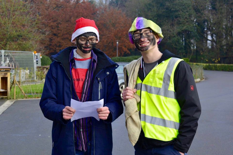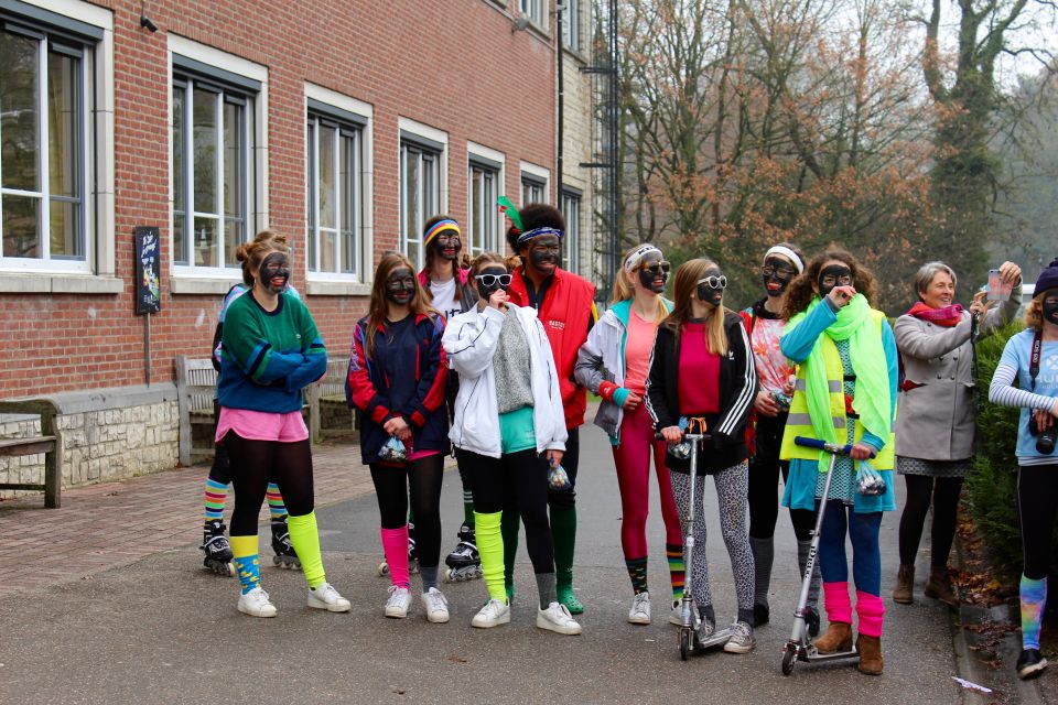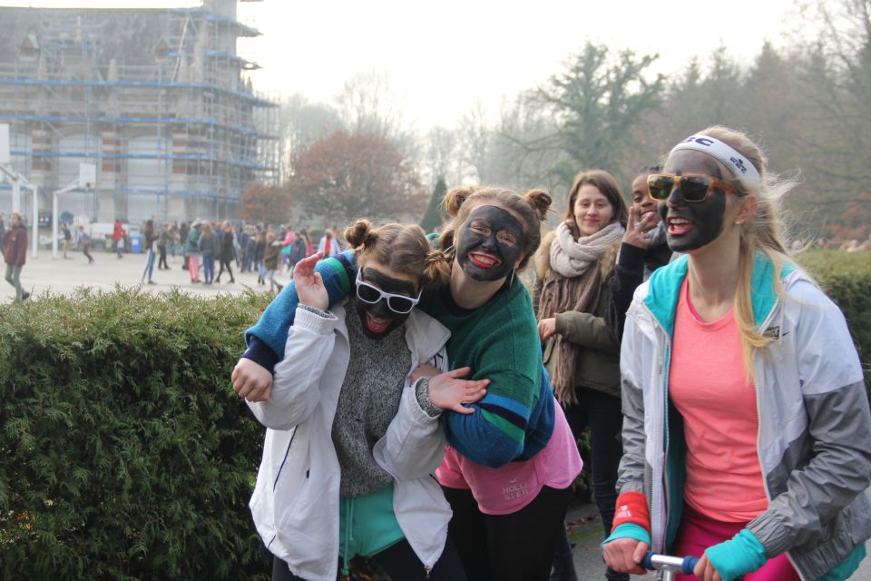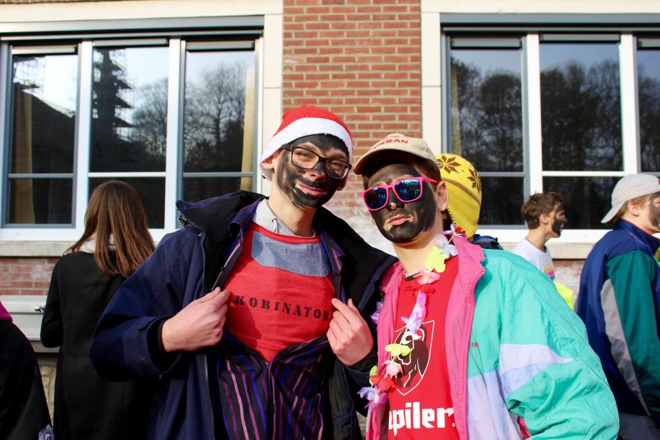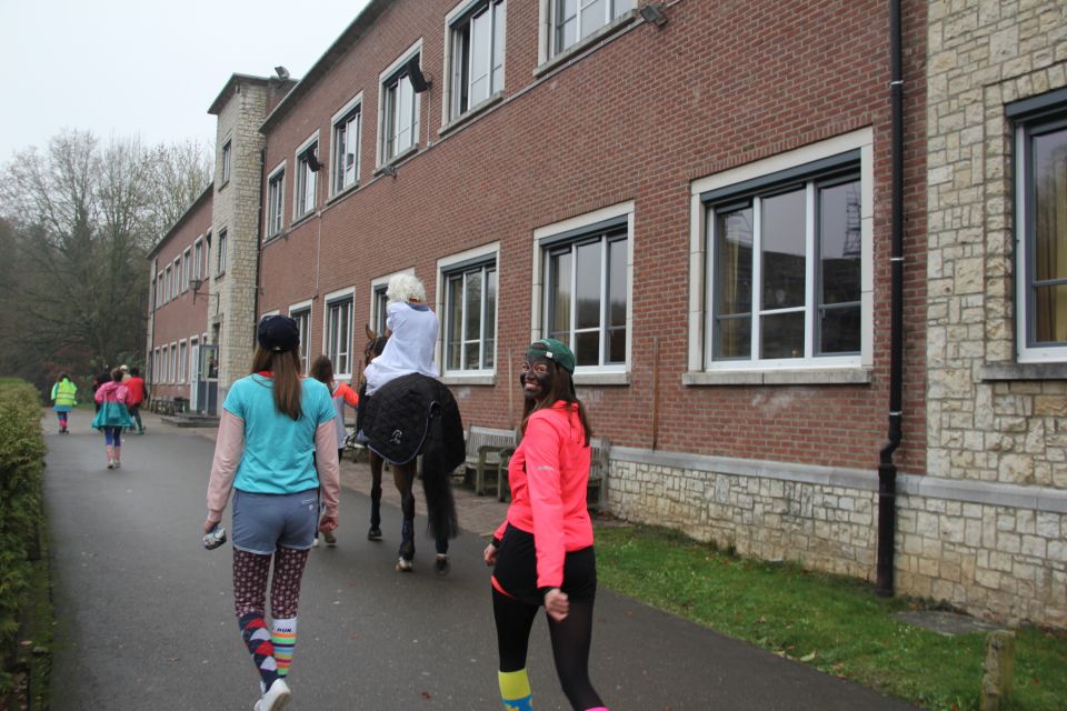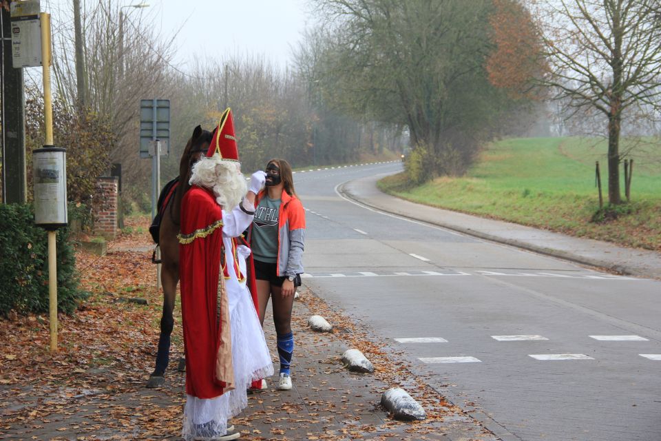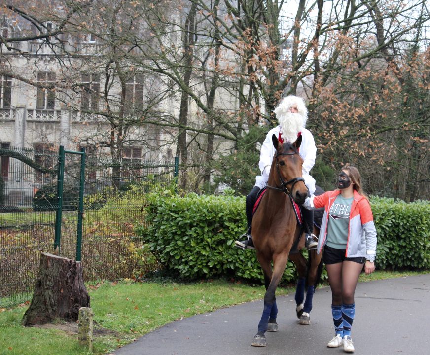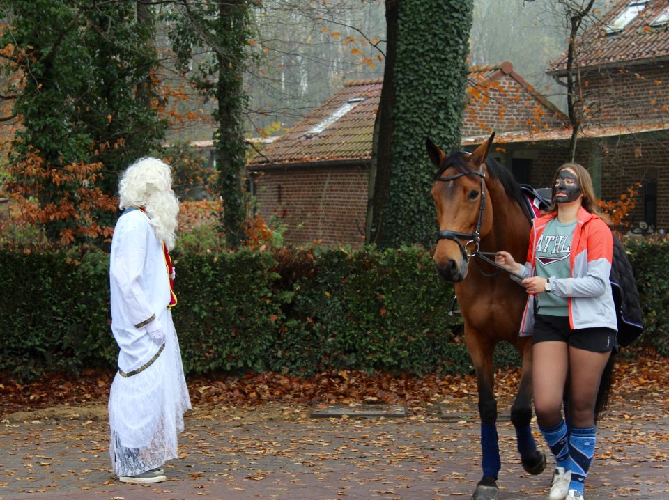 Dit jaar had de Sint een probleem. Hij moest natuurlijk op twee plaatsen tegelijk zijn nu ook de kleuterschool De Boskabouter op ons schoolterrein onderdak gevonden heeft. Maar niet getreurd. Sint genoeg voor iedereen! En nu eens niet per helicopter, kraanwagen, kar of bromfiets. De goedheilige man kwam dit jaar gewoon opnieuw te paard toe aan het Sint-Janscollege, vergezeld van al zijn ‘laatstejaarpieten’. En naar de Sint zelf beweerde had ‘Slecht weer vandaag’ in Spanje iets te lang in de zon gestaan, te oordelen aan zijn bruine kleur…
