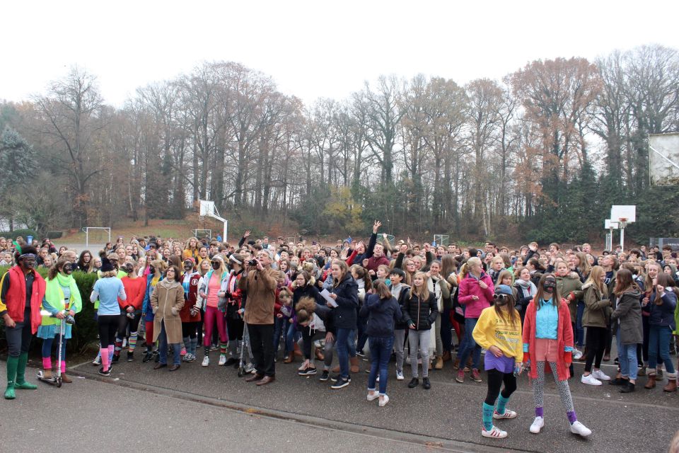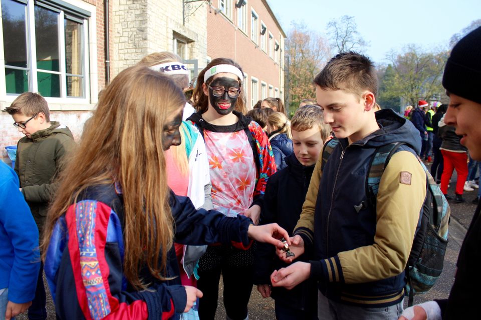 En zo hield de Sint opnieuw zijn jaarlijkse toespraak en haalde er noodgedwongen enkele stoute kindjes én zelfs leraars bij. Maar na het zingen van enkele Sinterklaasliedjes als boetedoening was alles weer vergeven en vergeten en mochten de Pieten met snoep beginnen smijten. Hoe het de Sint ondertussen in de kleuterklas verging, lees je dan wel weer elders. In elk geval proficiat aan onze laatstejaars voor een puike organisatie en een leuke middag. Tot volgend jaar Sint!