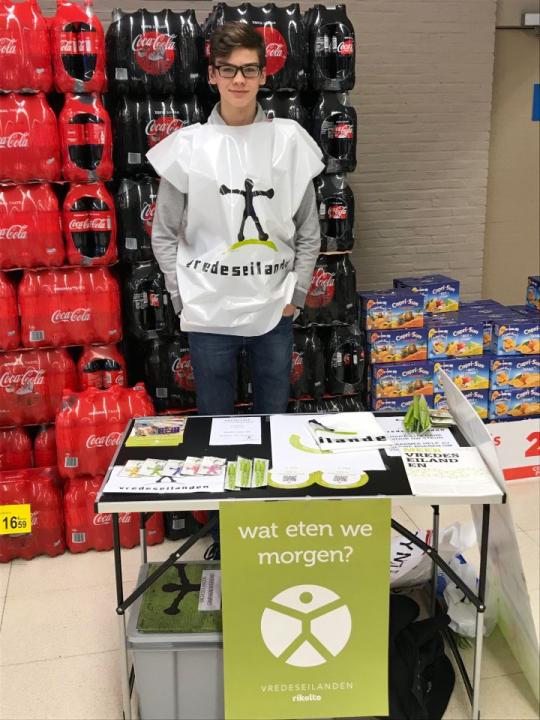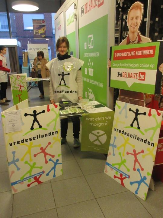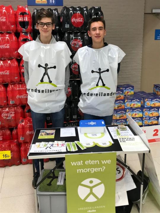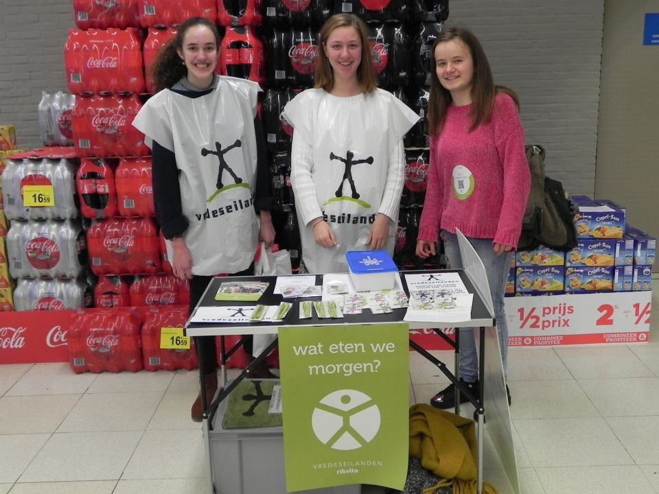 Ook dit jaar namen de leerlingen van de tweede en derde graad enthousiast deel aan de campagne van 12, 13 en 14 januari. De aftrap werd op school gegeven: tijdens de middagpauze van 11 januari konden de leerlingen een fair snoeppakketje of een Vredeseilandengadget kopen. Heel wat vrijwilligers hebben in het weekend in de warenhuizen van Tienen, Hoegaarden, Boutersem en Lovenjoel de gekende balpennen en sleutelhangers verkocht. De weergoden waren hen gelukkig gunstig gezind, want het zonnetje was ook van de partij.