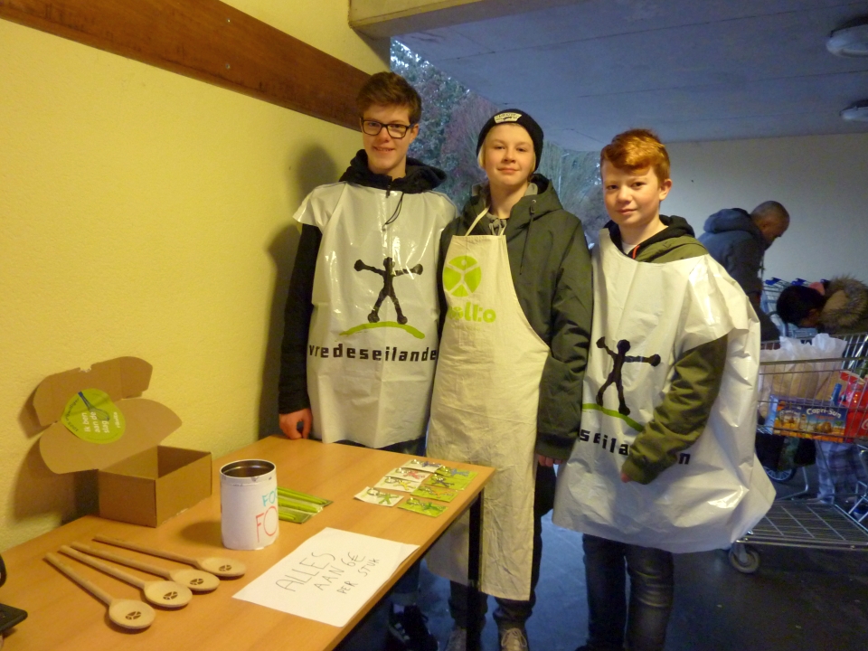 Met veel enthousiasme zorgden enkele vijfdejaars voor de verkoop van de gadgets op school. Ook de faire proevertjes hadden veel succes!